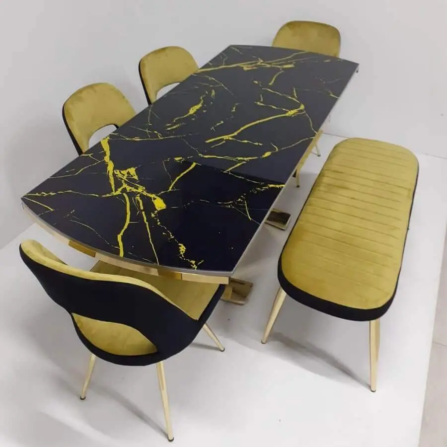 Ev dekorasyonunuza modern bir şıklık katacak bu masa takımı, hem günlük kullanım hem de özel davetler için ideal bir tercihtir.