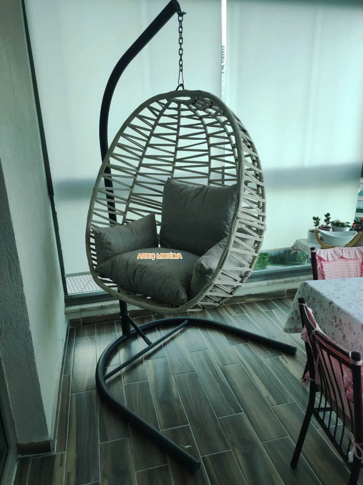 Konfor ve şıklığı bir araya getiren askılı rattan salıncak koltuk, balkon, teras ve bahçelerde keyifli bir dinlenme alanı oluşturur. Dayanıklı metal gövdesi ve yumuşak minderleri ile uzun ömürlü kullanım sunar.