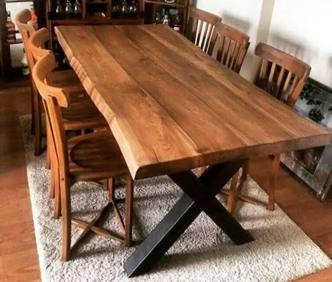 kütük masa, kütük masa takımı, metal ayaklı kütük masa, x ayaklı kütük masa, modern yemek masası, 6 kişilik kütük masa