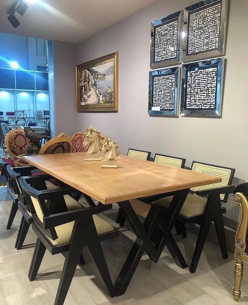 W Metal Ayaklı Kütük Masa Sandalye Takımı, doğal ahşap kütük masa tablası ve modern tasarımlı metal ayaklarıyla şıklığı ve dayanıklılığı bir arada sunuyor. Vakko tarzı ayak tasarımı sayesinde yaşam alanlarınıza farklı bir estetik katarken, sandalyeleriyle birlikte konforlu kullanım imkânı sağlar.